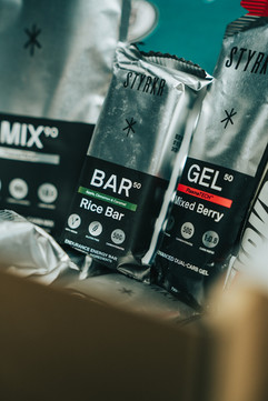 STYRKR - Gel 30, Bar 50 and STYRKRTHON. Gel 30 brings 30g of carbohydrates and a little nitric oxide boost to fuel top performance. Bar 50 has that bit greater carbohydrate content and all natural ingredients to fuel your rides. To recover we love the play on the old Marathon, with the STYRKRTHON a vegan protein bar that is super tasty.